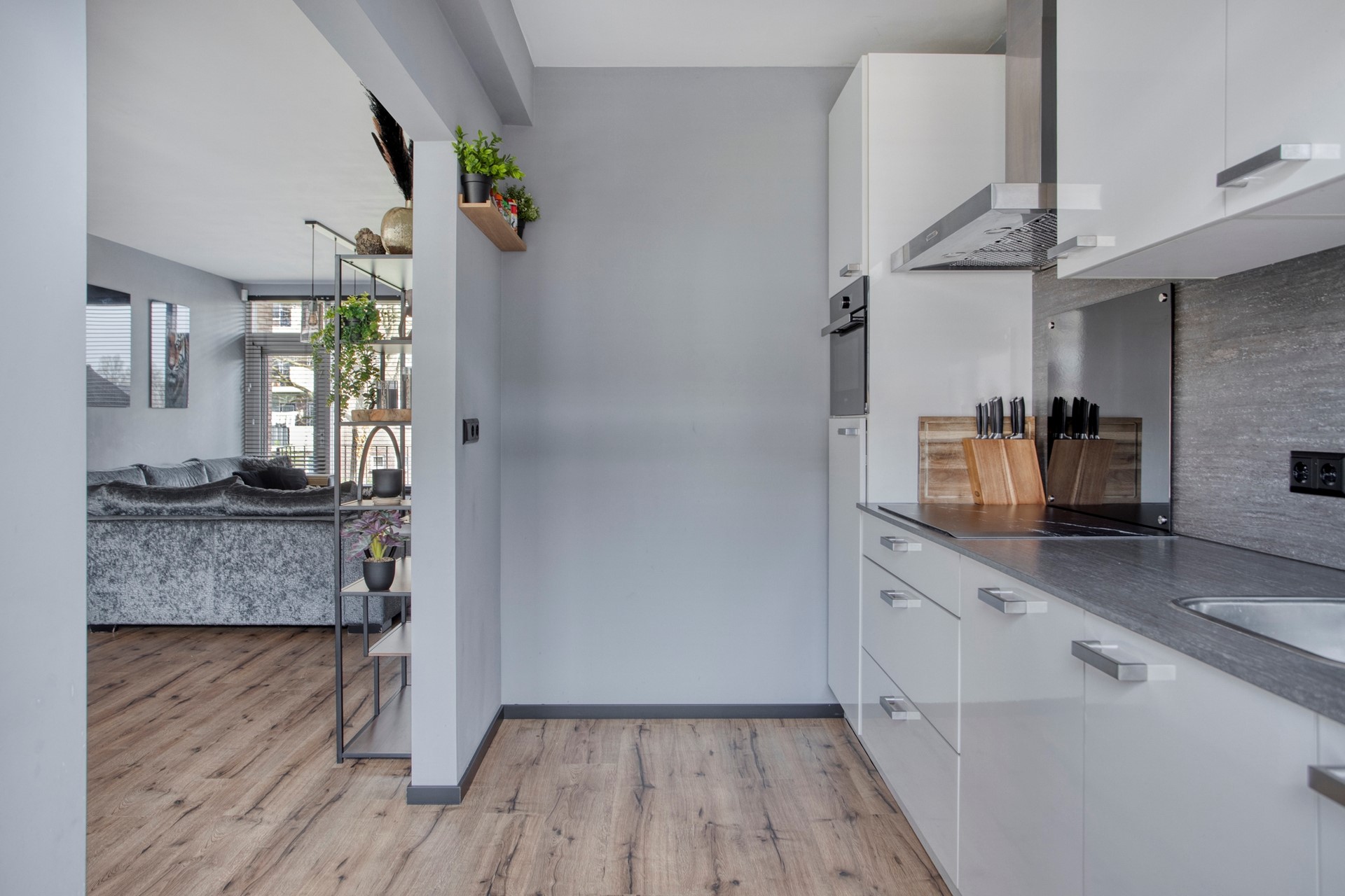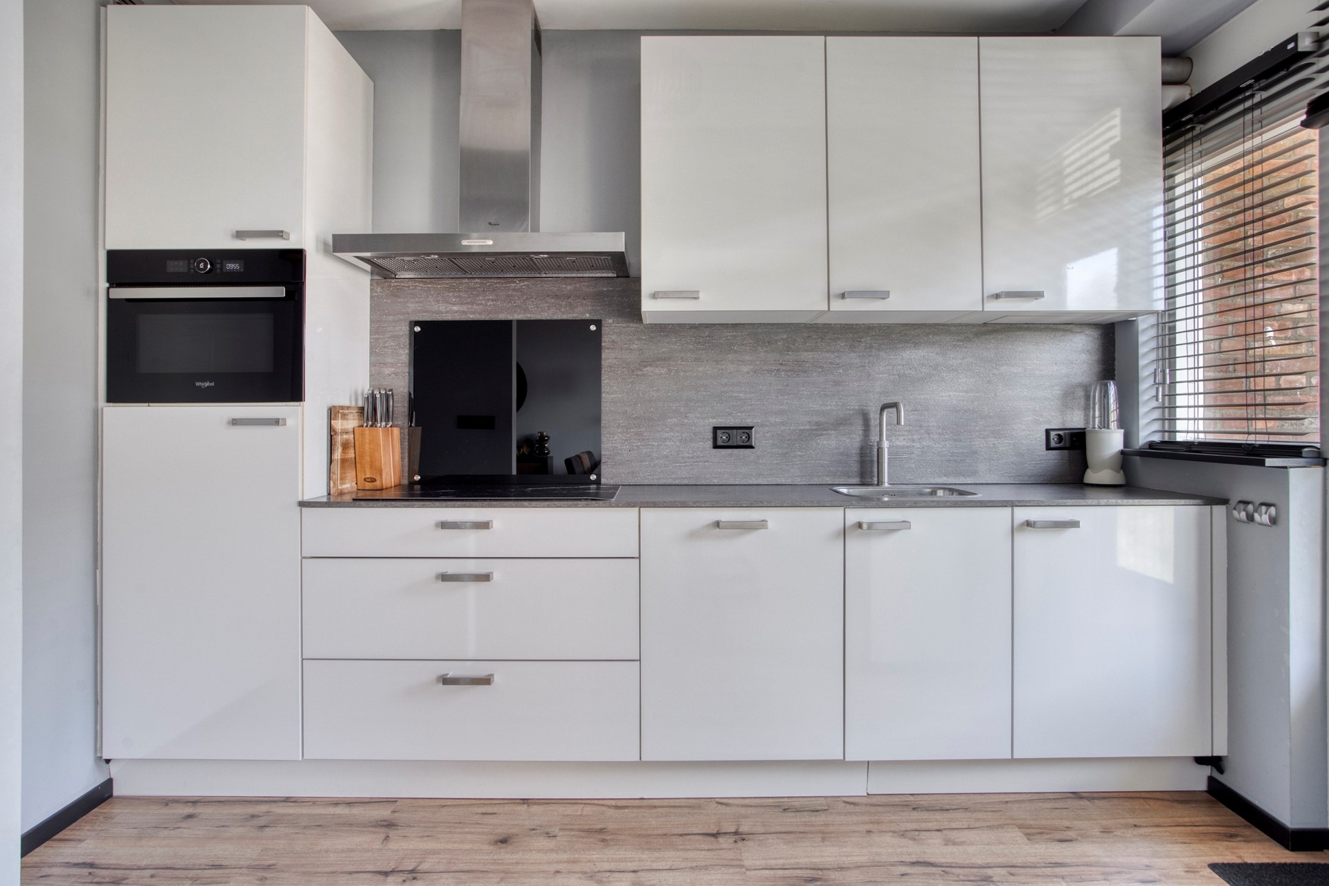 Ook de badkamer is strak en modern afgewerkt, met een frisse uitstraling en kwalitatieve materialen. De separate toiletruimte is in dezelfde stijl doorgevoerd, wat zorgt voor een mooi geheel. De woning beschikt daarnaast over twee comfortabele slaapkamers en is volledig voorzien van een nette laminaatvloer, wat bijdraagt aan het instapklare karakter.