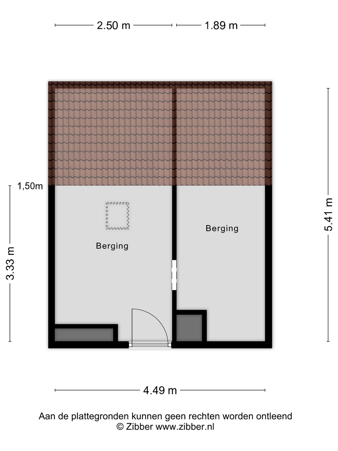 - Berging op de begane grond en op de zolderverdieping (totaal circa 30 m2 bergruimte)