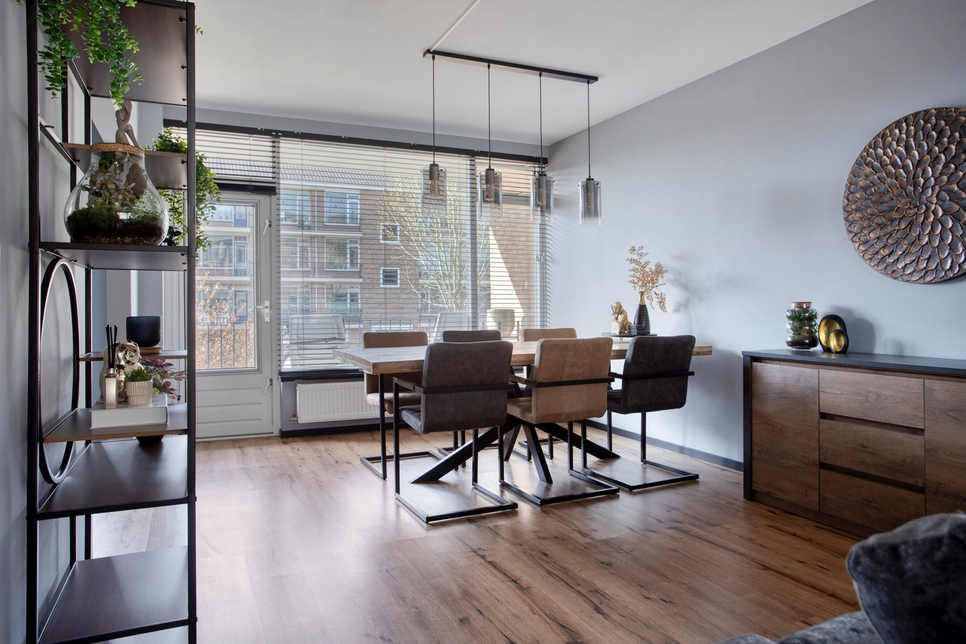 WOONKAMER Lichte doorzon woonkamer met laminaatvloet afwerking en toegang tot de balkons aan de voor- en achterzijde.
