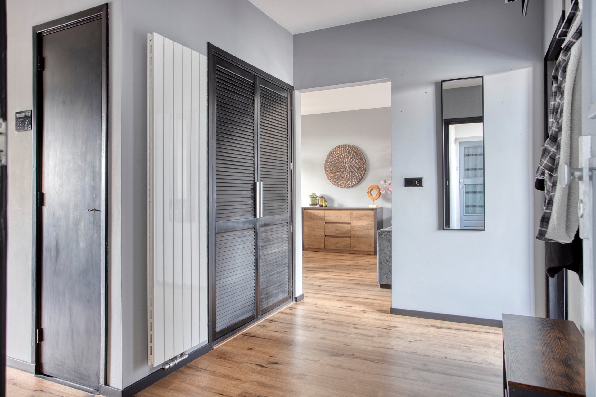 HAL Ruime hal met toegang tot de vertrekken, meterkast, toiletruimte en grote bergkast met aansluiting voor de wasapparatuur