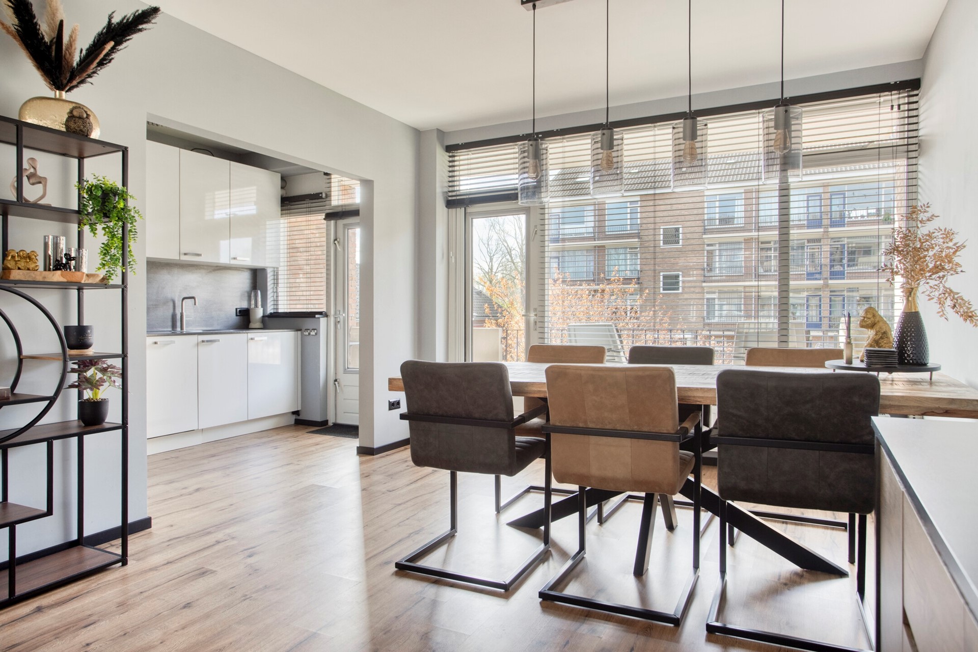 Bij binnenkomst valt direct de verzorgde afwerking op. De lichte doorzonwoonkamer zorgt voor een prettige en ruimtelijke sfeer, mede dankzij de grote raampartijen. De open keuken is modern uitgevoerd en vormt een echte eyecatcher in de woning. Deze is voorzien van diverse inbouwapparatuur waardoor koken hier een plezier wordt.