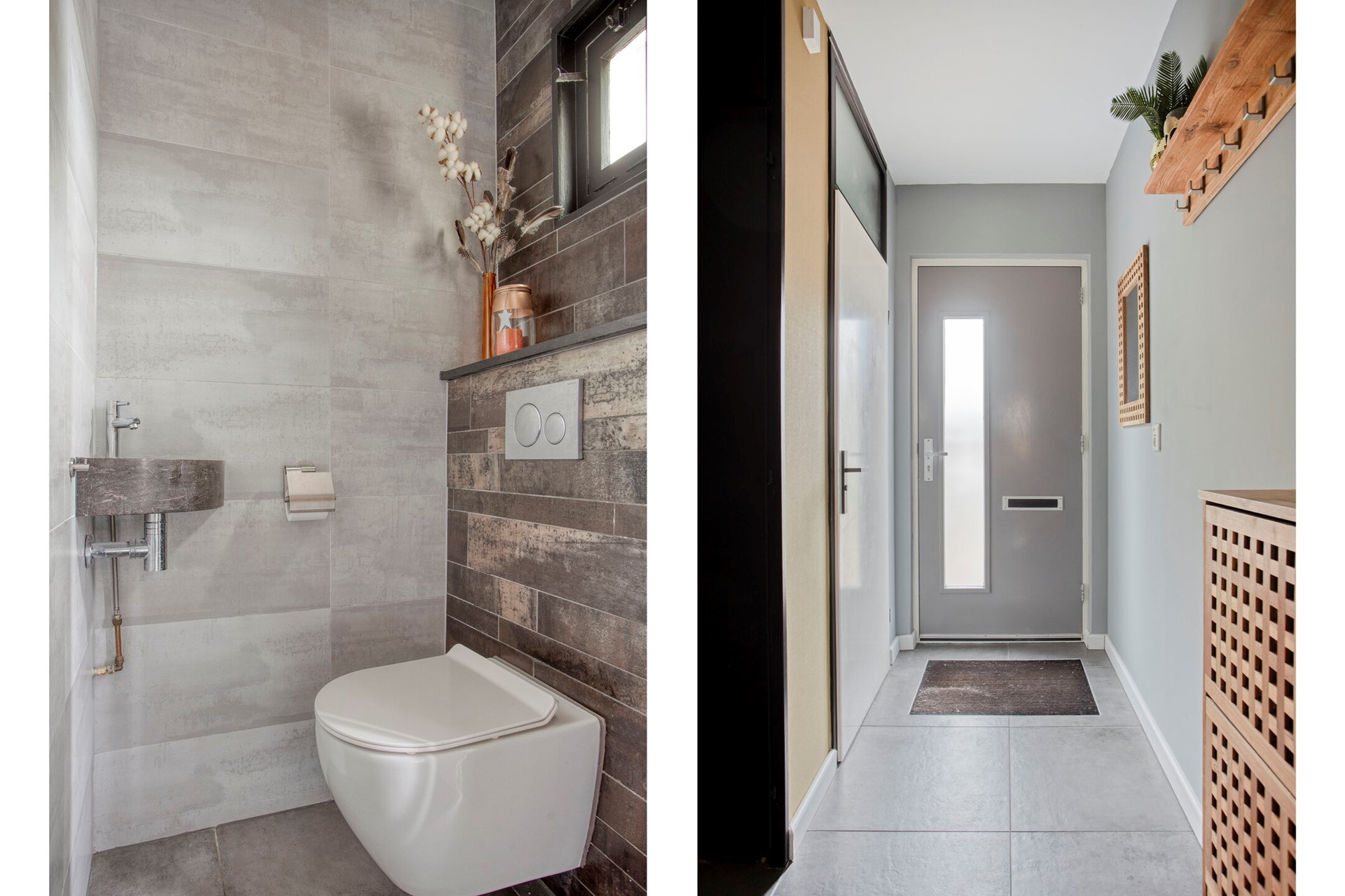 HAL: Ruime entree met toiletruimte, meterkast, trap naar de verdieping en toegang tot de woonkamer