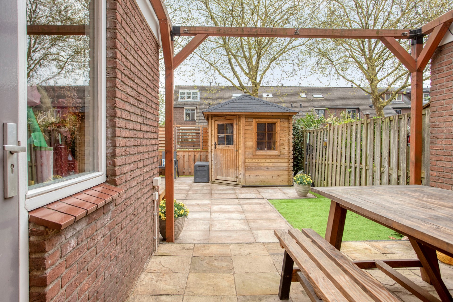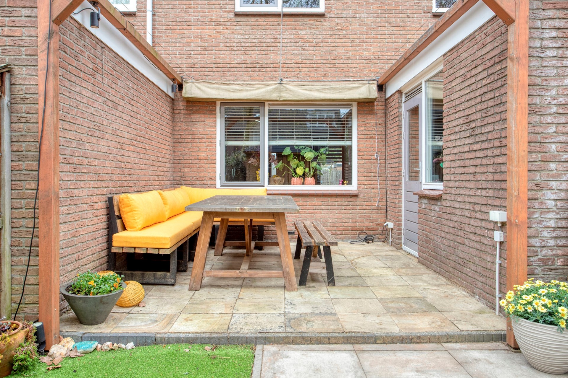 Heerlijke tuin op het Zuidoosten waardoor je lang van de zon kan genieten. De tuin biedt diverse zitgelegenheden en er is een extra houten tuinhuis. Er is geen achterom aanwezig en dat biedt een gevoel van veiligheid. De achterom is ook niet noodzakelijk want de fietsen kunnen mooi in de fietsenberging aan de voorzijde. Kortom: de achtertuin is een echte plus!