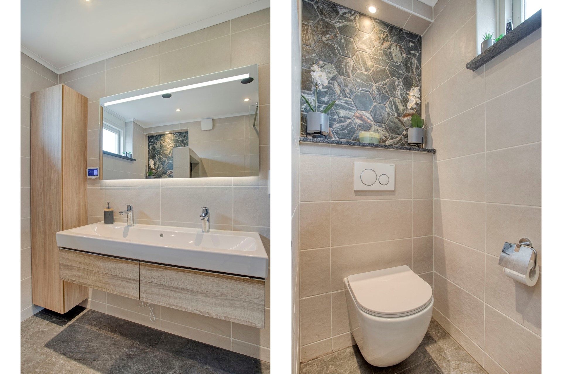 Op de eerste verdieping vind je drie goed bemeten slaapkamers. De badkamer is modern en compleet uitgevoerd met een ruime inloopdouche inclusief sunshower, een badmeubel voorzien van dubbele wastafel en een tweede toilet. Comfort en luxe zijn hier vanzelfsprekend.