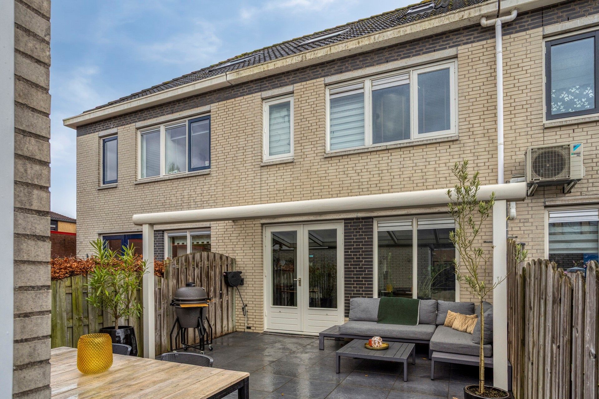 De woning is onder andere voorzien van een sfeervolle tuingerichte woonkamer en een moderne keuken: strak, eigentijds en van alle gemakken voorzien. Boven wachten maar liefst vier volwaardige slaapkamers, ideaal voor een gezin, thuiswerken of die langgekoesterde inloopkast. De badkamer is modern en fris, precies zoals je dat vandaag de dag wilt. En buiten? Daar verleng je het seizoen moeiteloos onder de overkapping aan de achtergevel – of het nu zomer is of niet.