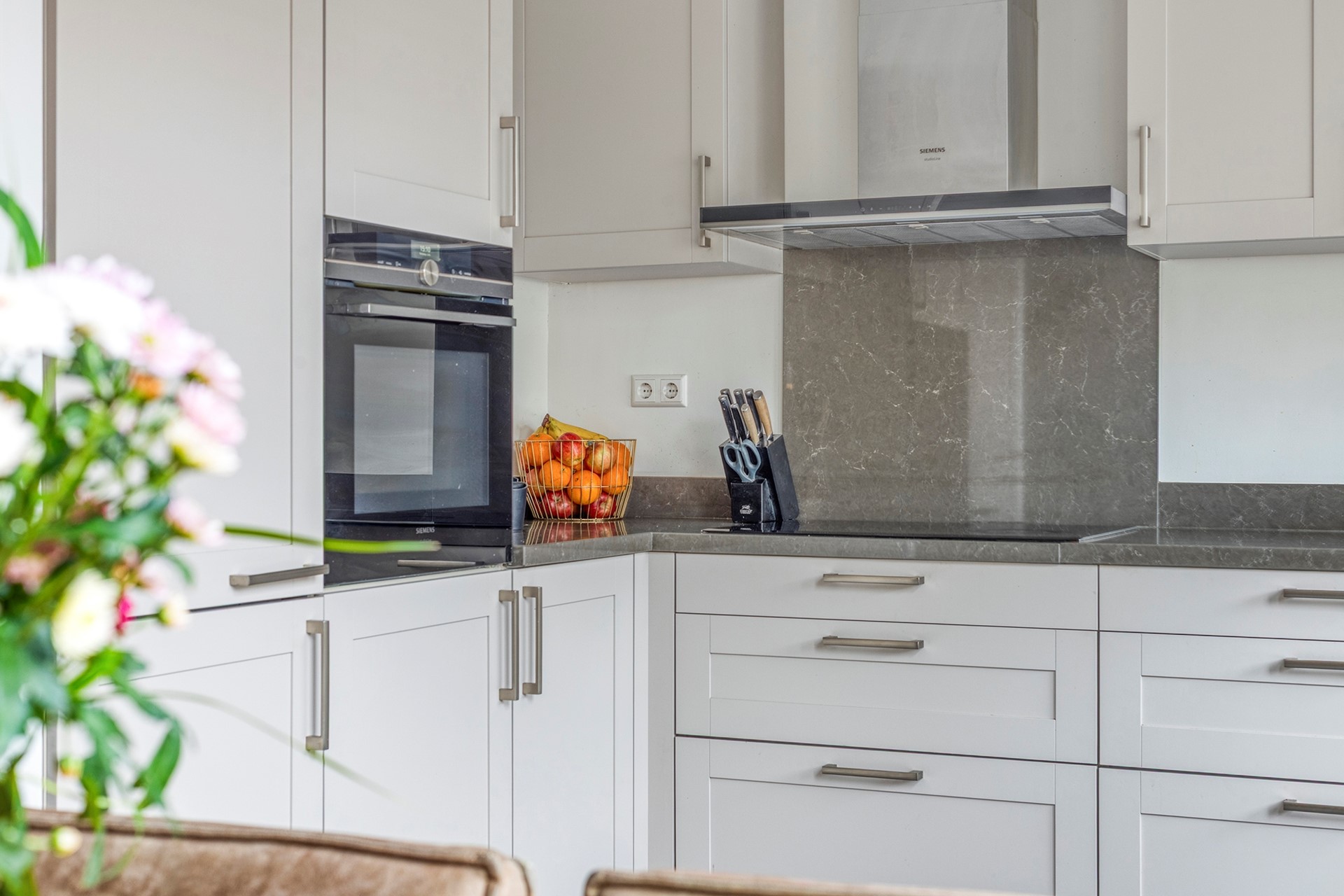KEUKEN De keuken uit 2019 is voorzien van de volgende inbouwapparatuur - koelkast - vriezer - combi-oven - inductie kookplaat - afzuigkap - vaatwasser - quooker met cube. Vanuit de keuken is er een deur naar de tuin.