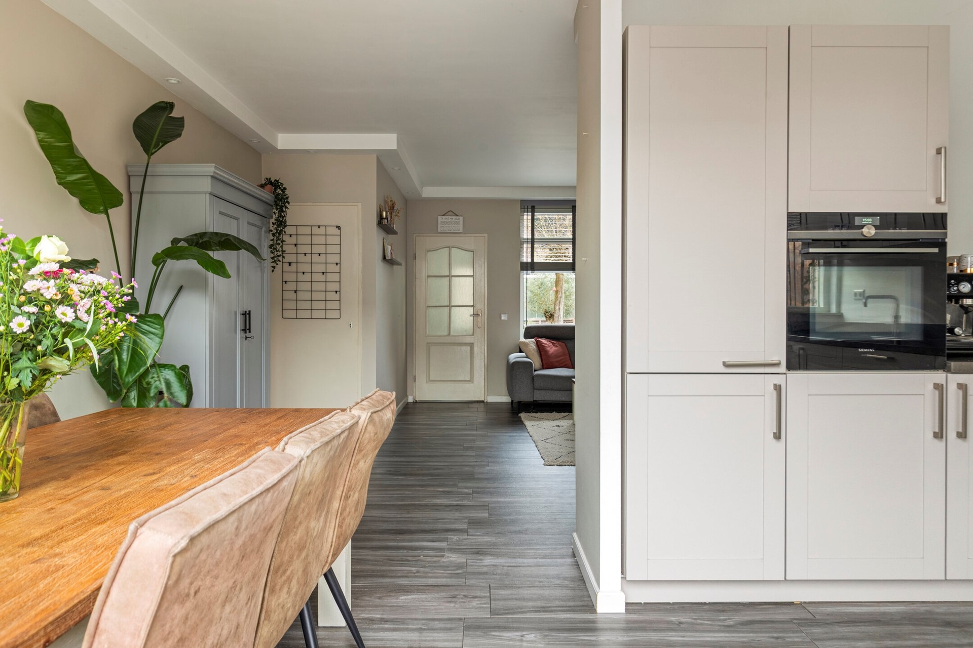 De woonkamer is heerlijk ruim en biedt alle mogelijkheden voor een royale zithoek én een grote eettafel waar je met het hele gezin (of vrienden) samenkomt. Dankzij de prettige lichtinval voelt het hier extra open en uitnodigend. De moderne keuken sluit hier naadloos op aan: strak uitgevoerd, eigentijds en van alle gemakken voorzien.