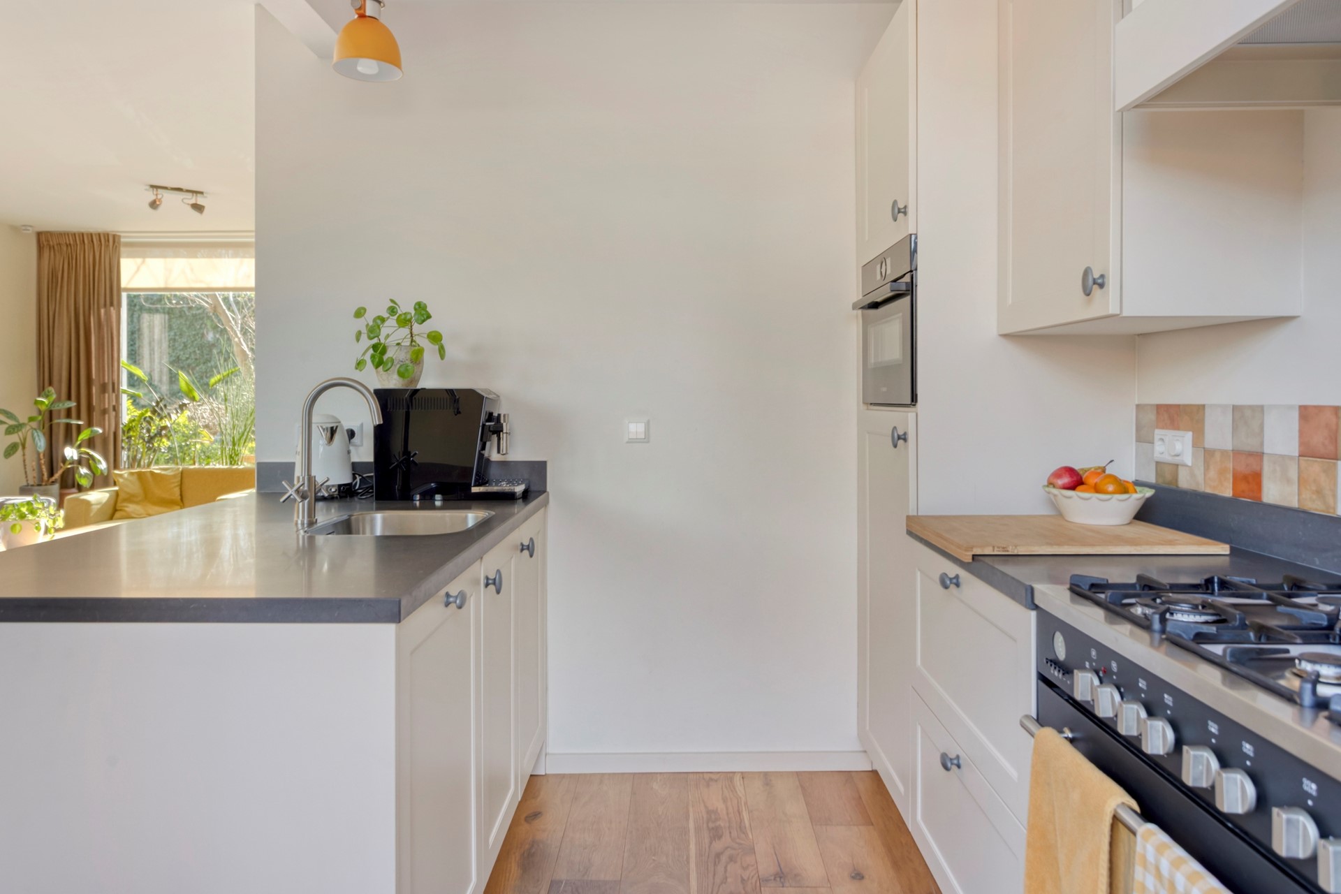 Binnen ervaar je direct de fijne sfeer. De doorzon woonkamer is heerlijk licht en ruim, met grote raampartijen die het daglicht rijkelijk binnenlaten. De warme vloerafwerking en rustige kleuren zorgen voor een basis waar je je direct thuis voelt.