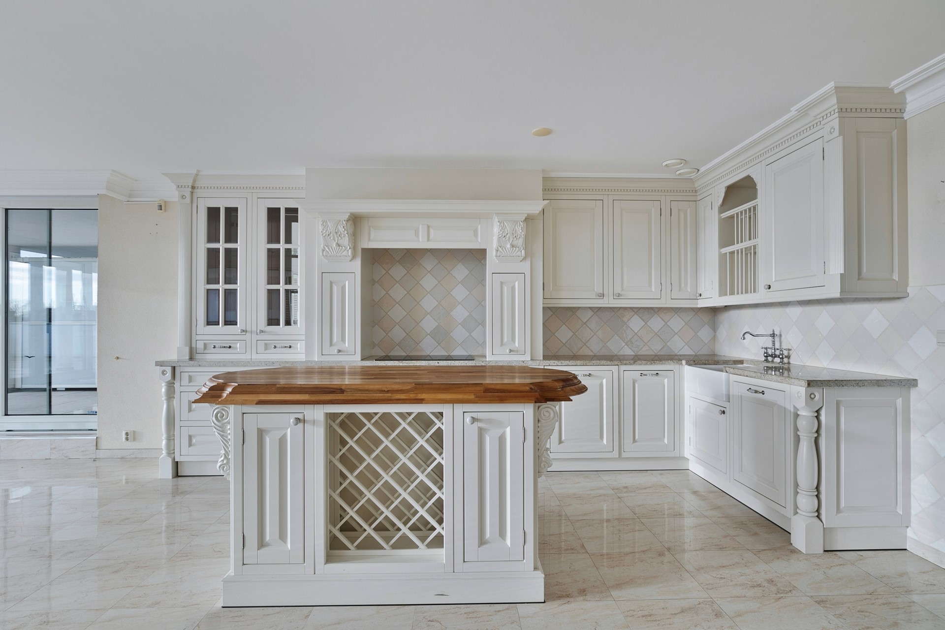 Keuken: Luxe keuken voorzien van diverse inbouwapparatuur (o.a. koelkast, vriezer, vaatwasser, inductiekookplaat).
