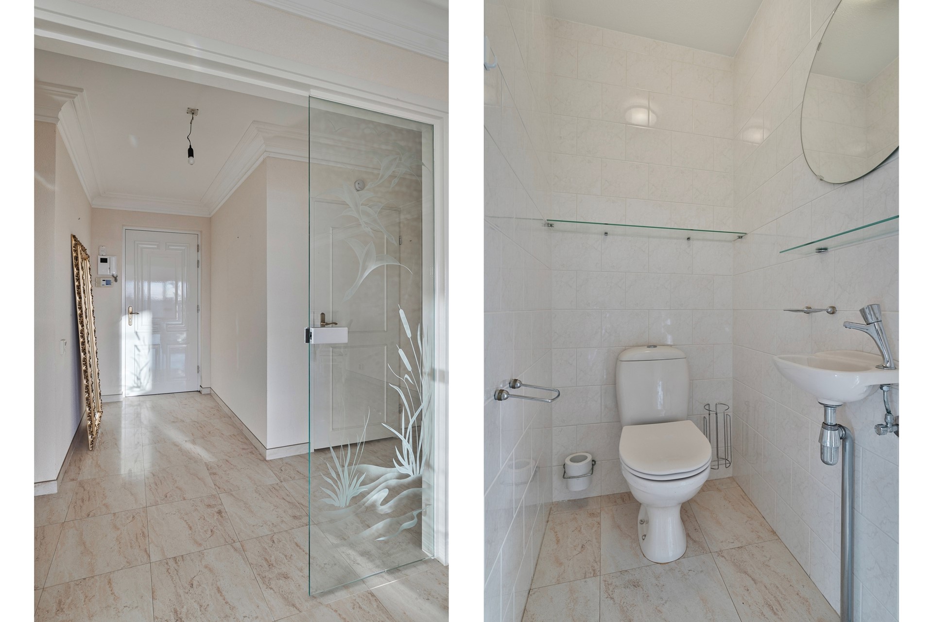 Hal met afgesloten entree naar tussenhal met toegang tot het appartement.