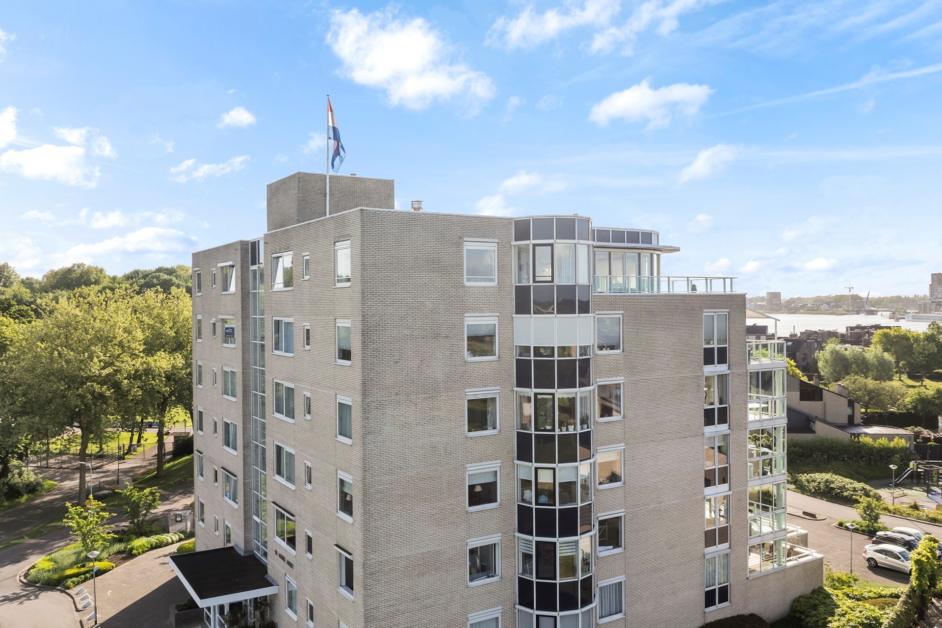 Fantastisch uitzicht op het 'Balkengat" met daar achter de "Maas". Dit appartement heeft het allemaal, ruime kamers, riant terras (100 m²), garage en dit mooie uitzicht!