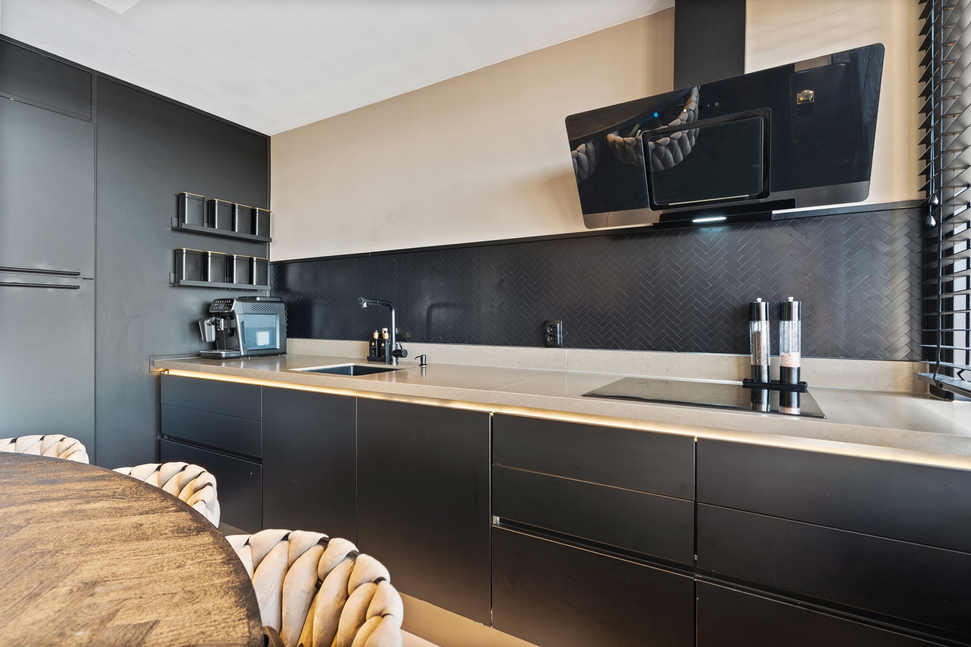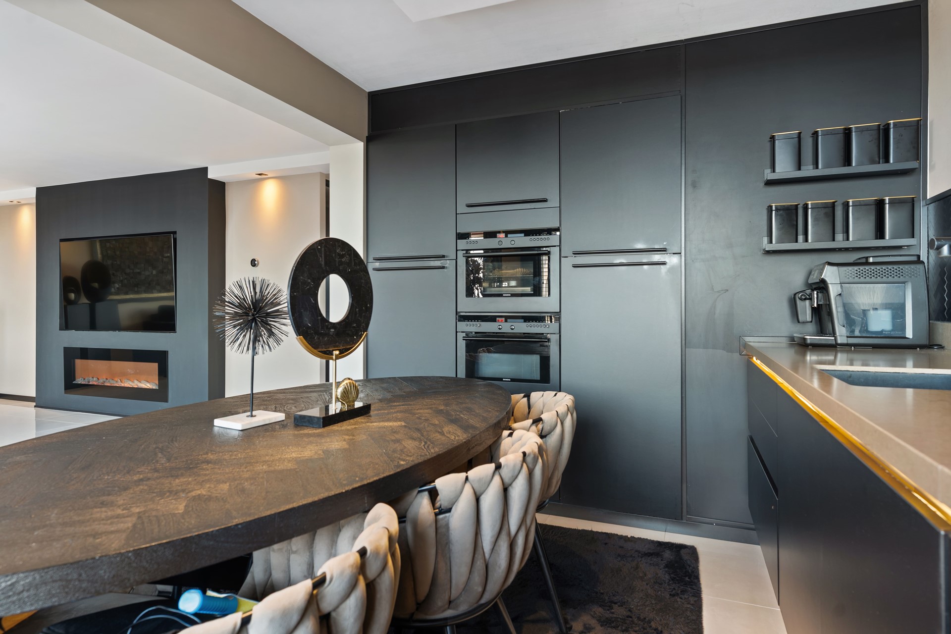 De open keuken is een eyecatcher op zichzelf. Hoogwaardige apparatuur, rijke materialen en een stijl die je normaal alleen in exclusieve woonbladen ziet. Hier kook je niet zomaar—hier ervaar je pure kwaliteit.