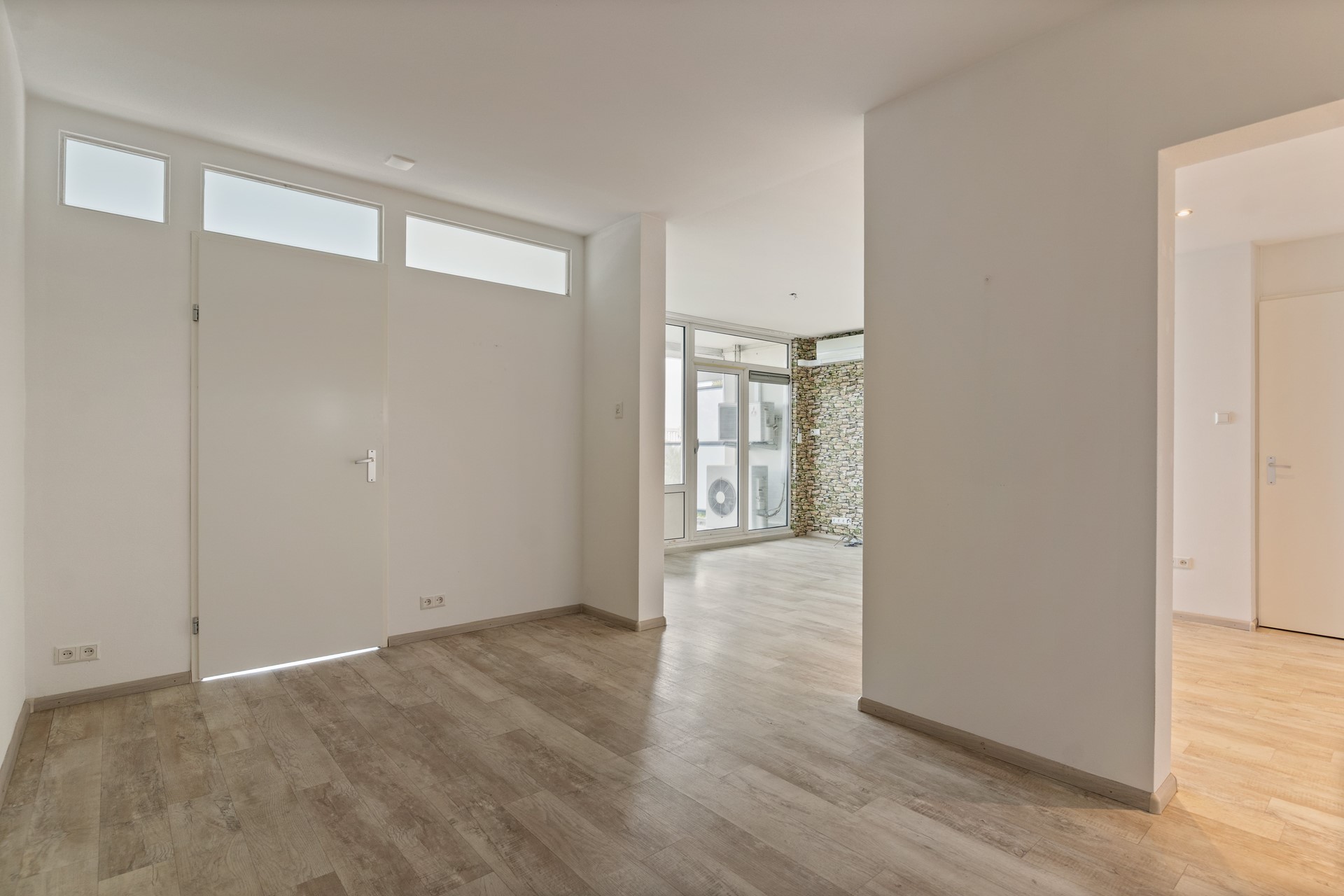 WOONKAMER Ruime woonkamer met laminaatvloer en airconditioning. De woonkamer geeft toegang tot de slaapkamers en het balkon.