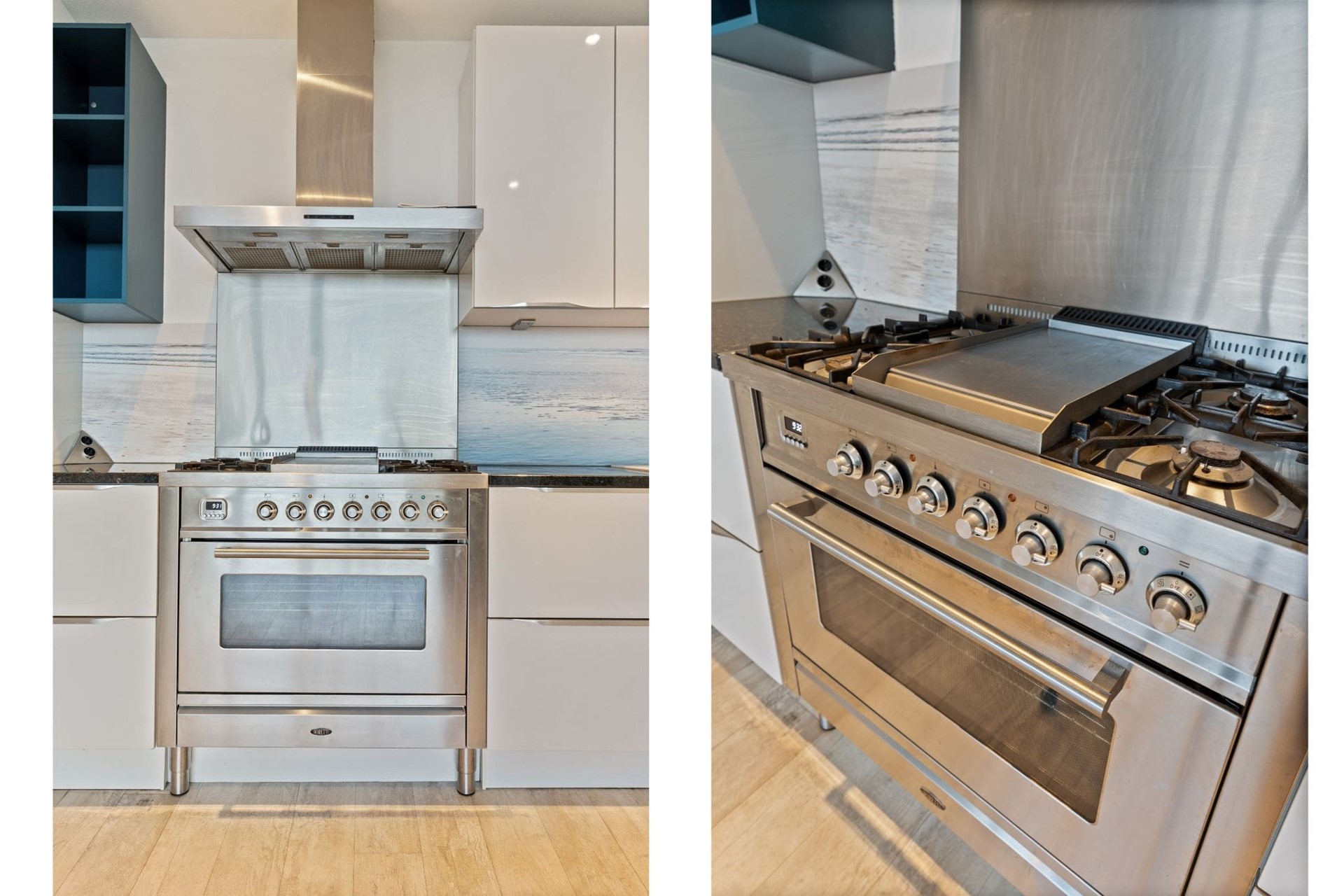 OPEN KEUKEN Ruime keuken met de volgende inbouwapparatuur - vaatwasser op hoogte - Boretti gasfornuis (4 pits gaskookplaat en grillplaat) - afzuigkap - oven