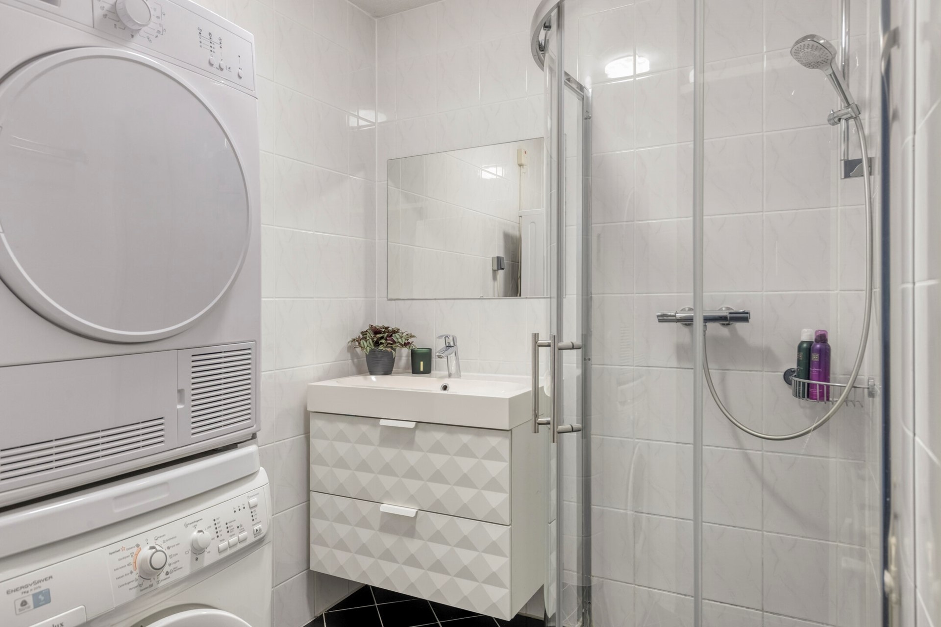 De smaakvol ingerichte woonkamer voelt ruim aan en loopt naadloos over in de moderne open keuken. Met twee slaapkamers heb je genoeg ruimte voor een logeerplek of thuiswerkplek. De badkamer sluit helemaal aan bij de stijl van nu: strak, modern en goed ingedeeld.