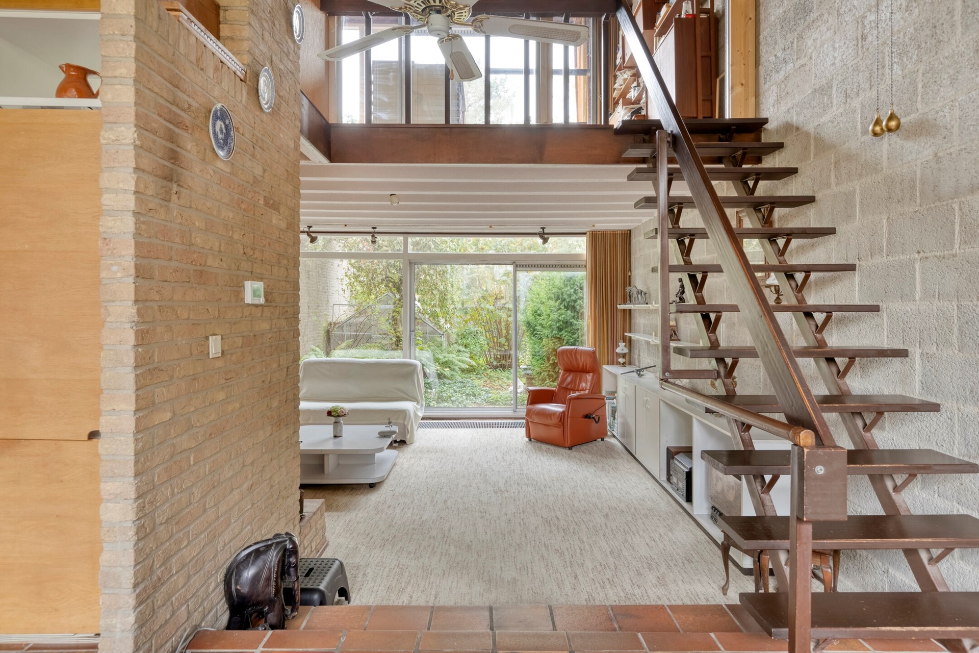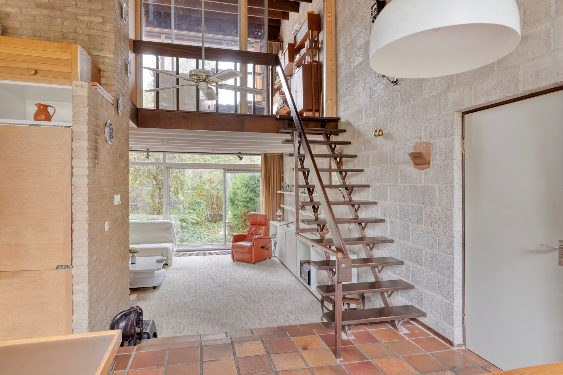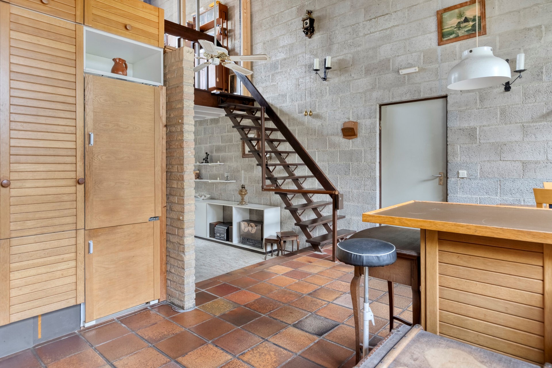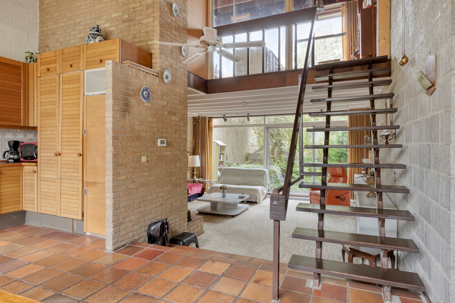 Living: Ruime leefruimte met eetkeuken, zitkamer en trap naar de multifunctionele ruimte op de vide.