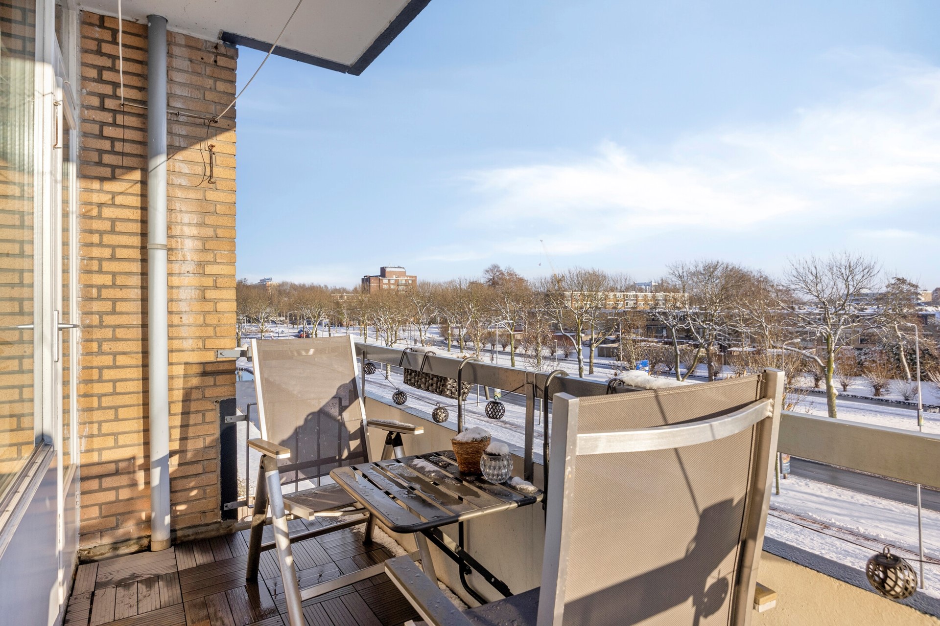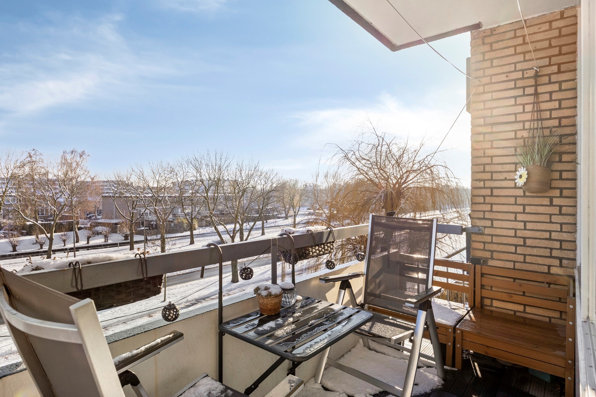Balkon gelegen op het zuidoosten. Deze is bereikbaar vanuit de woonkamer. Klein balkon bereikbaar vanuit de keuken, deze is gelegen op het noordwesten.