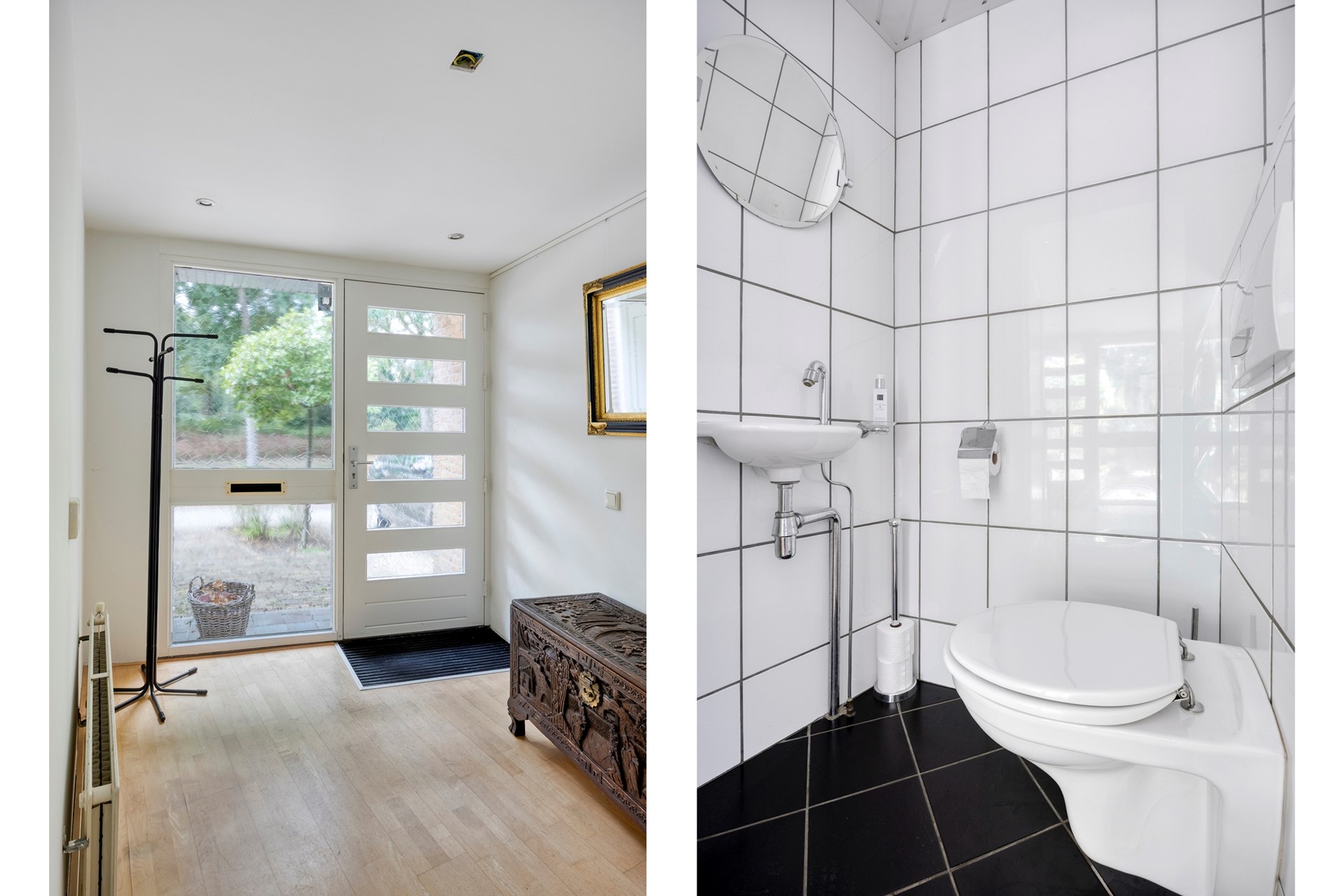 Entree met toiletruimte en toegang tot de garage en de woonkamer.